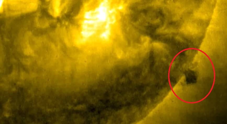 Un misterioso objeto con forma de cubo negro fue captado por cámaras de la Administración Nacional de Aeronáutica y el Espacio (NASA) emergiendo del Sol.